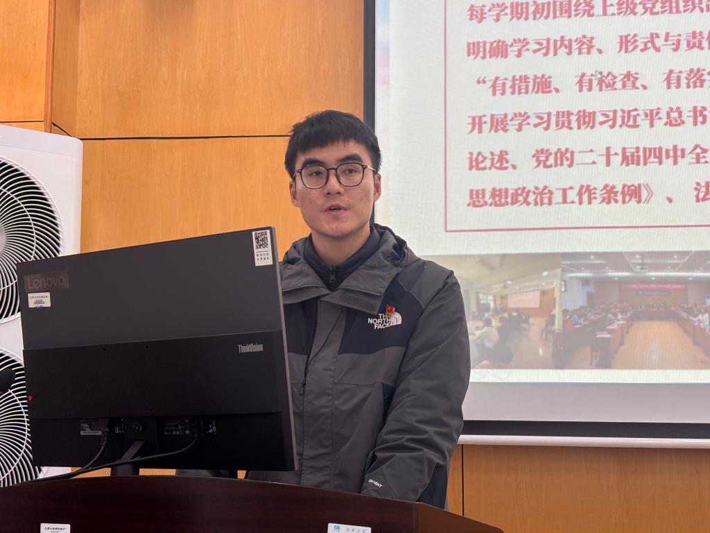 永利23411集团研究生第二党支部严格落实“三会一课”制度,确保党员队伍管理规范化、科学化。以政治理论学习为核心,促进形成“自觉学、交流学、实践学”的学习氛围,支部成员在学术研究、农村调研与社会实践等方面展现先锋模范作用。永利23411集团本科生第三党支部则聚焦于强化思想政治引领、筑牢学生理想信念根基、促进学风建设与成长成才,创新将主题党日活动与党史学习教育有机结合,支部成员在学业引领、实践服务与竞赛成长等方面发挥积极带头作用,确保党的思想与行动教育落到实处。其他7个学生党支部分别围绕强化组织建设、深化理论武装、创新支部活动等方面汇报工作成果。