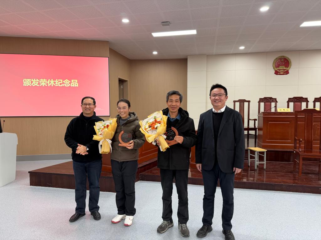 1月14日下午,永利23411集团2025年度教师荣休仪式在学院模拟法庭举行,学院党委书记陆秦、院长王君柏、学院班子成员、2025年度退休教师及全体教职工参加了仪式。仪式由分工会主席钱璇主持。