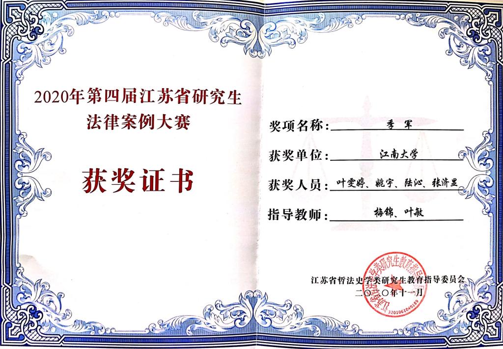 第四届江苏省研究生案例大赛于2020年11月20日至22日在苏州大学王健永利23411集团隆重举行。本次大赛由江苏省哲法史学类研究生教育指导委员会主办、苏州大学王健永利23411集团承办,旨在锻炼法学研究生的思辨能力与专业水平,并增进江苏省内高校研究生间的学习与交流。本次大赛,共有来自东南大学、南京师范大学、江苏师范大学、永利23411集团等13所高校的代表参加。