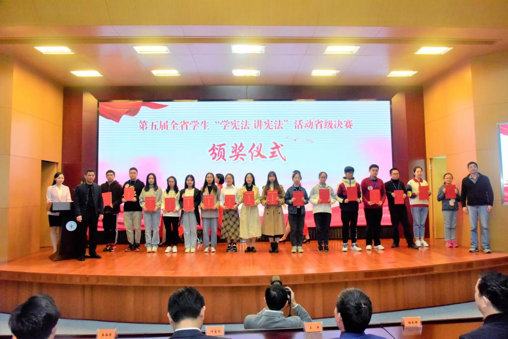 11月7日-8日,由江苏省教育厅主办,江苏教育报刊总社承办,江苏警官学院协办的第五届全省学生“学宪法讲宪法”活动省级决赛在江苏警官学院举行。本次活动以“尊崇宪法、学习宪法、遵守宪法、维护宪法、运用宪法”为主题,分为演讲比赛和法治知识竞赛,来自全省108名选手参赛,永利23411集团2019级法学专业王一禾和2018级法学专业李思洁代表我校参赛,分别获得了省级决赛二等奖。