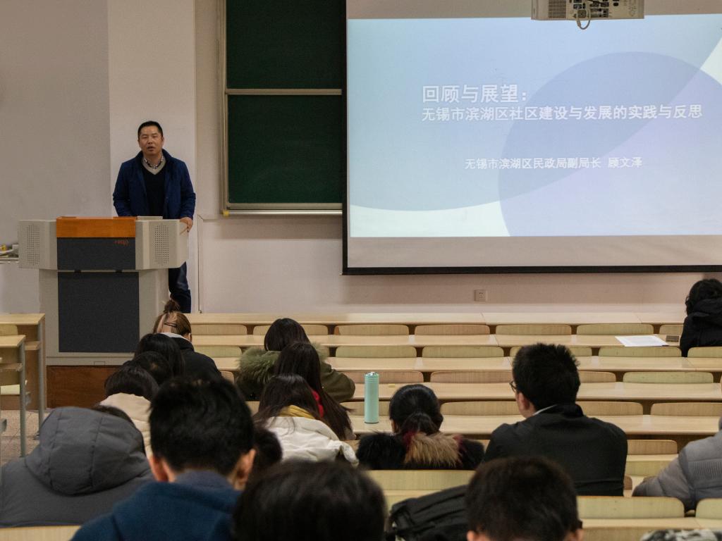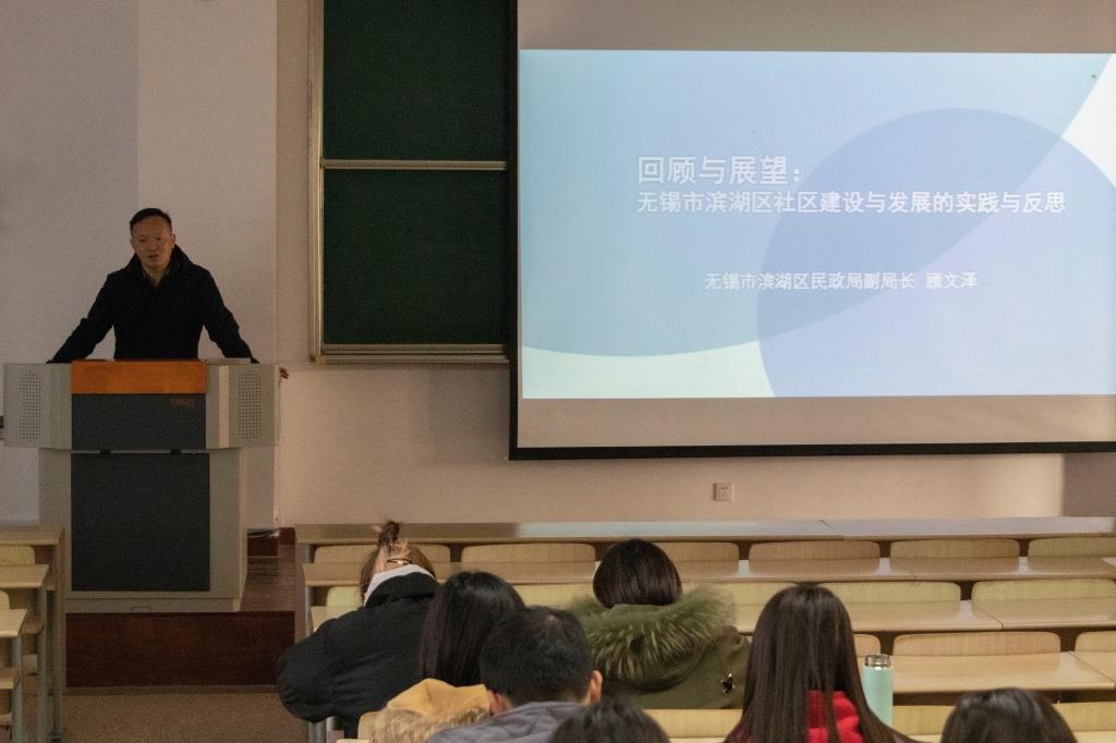 在聆听了顾文泽副局长生动有趣、鞭辟入里的讲演之后,同学们收获颇丰,主动思考自身所处周围社区状况。最后,讲座在热烈的掌声中落下帷幕。通过此次学习,同学们对于无锡市滨湖区的社区发展特点及问题有了更深层次的思考和理解,相信大家在今后的学习过程中更可以学以致用,了解其他地区社区问题状况,将知识充分结合实践,融入到当今社会生活之中。