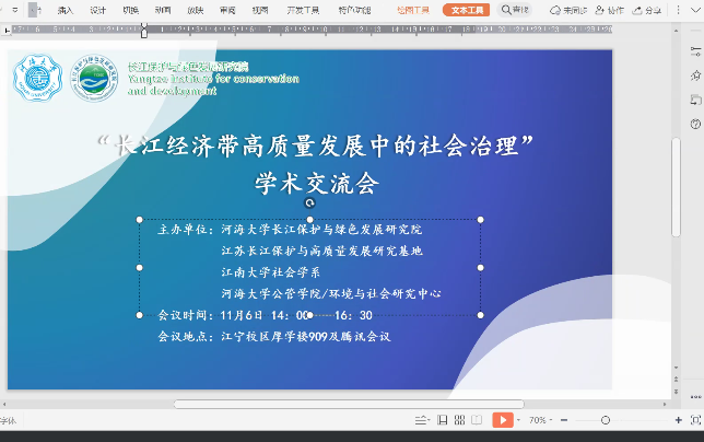 2021年11月6日下午,“长江经济带高质量发展中的社会治理”学术交流会,在河海大学江宁校区厚学楼909会议室和线上腾讯会议顺利召开。本期论坛由河海大学长江保护与绿色发展研究院/江苏长江保护与高质量发展研究基地、永利23411集团、河海大学公管学院/环境与社会研究中心等单位联合主办。