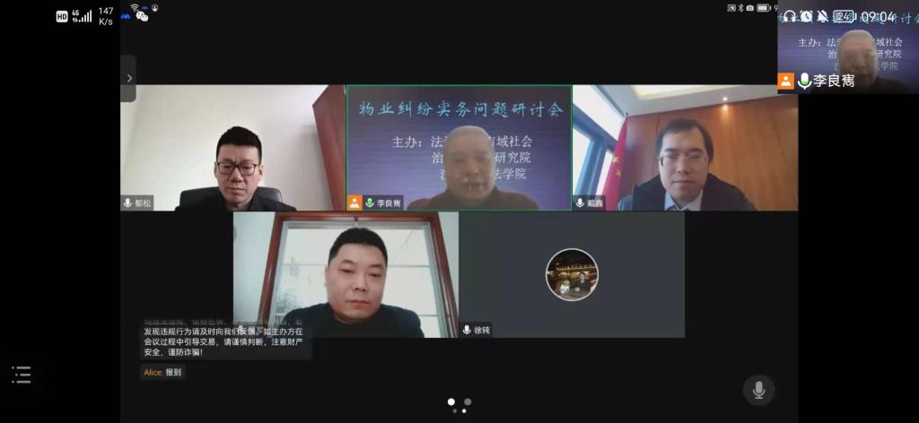为更好地依法处理物业纠纷、解决市域社会治理现代化过程中老百姓关心的热点、痛点问题,法治无锡·市域社会治理现代化研究院、永利23411集团于12月26日举办了主题为“物业纠纷实务处理”的线上研讨会,会议由我院李良寯老师主持,与会各界专家学者包括滨湖区法院郁松庭长、炜衡律师事务所戴鑫律师、滨湖区住建局吴军科长以及我院徐钝老师等。