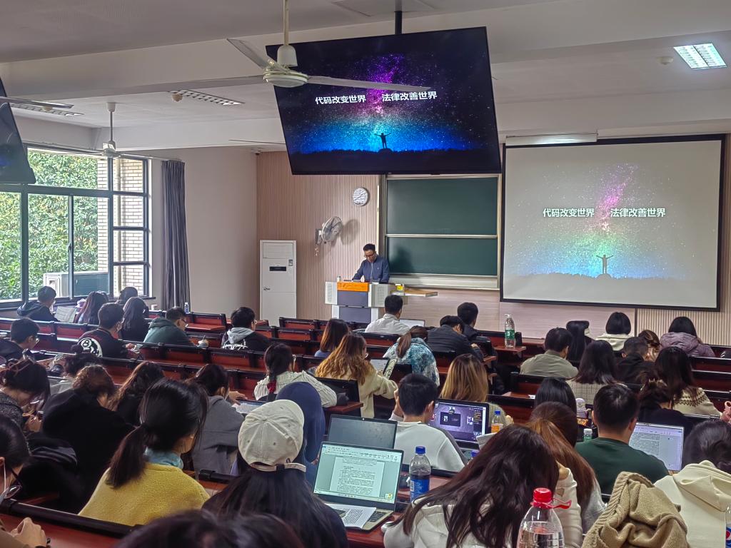 11月22日下午,无锡市大数据管理局数字化转型推进处副处长陶辉应邀做客“德法力行”讲坛,在二教C202开展“数字文明法治护航”的专题讲座。本次讲座由永利23411集团党委副书记、副院长胡博主持,覆盖研究生200余人。