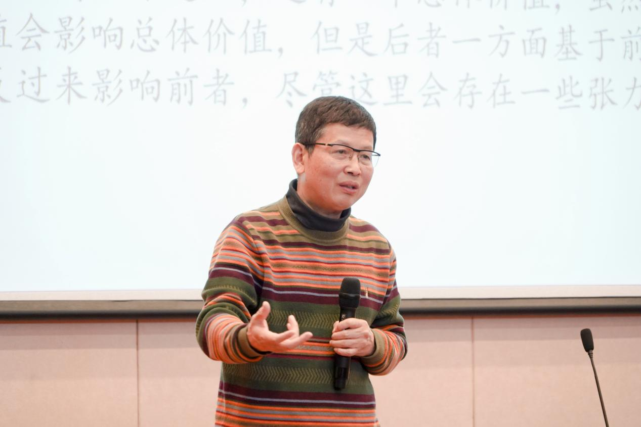 讲座伊始,王春光教授首先解读了乡村价值的涵义与作用。他从乡村价值的定义、不同主体与乡村价值的关系、乡村价值的变迁、乡村价值与乡村振兴的关系四个方面展开介绍。他强调,不论是产业振兴、组织振兴、文化振兴、人才振兴,都离不开乡村价值的再造。乡村价值的再造是乡村振兴的依托。随后,他详细分析了当前乡村发展中面临的困境与挑战。他表示,在现代社会现代化与城市中心主义的发展理念下,现代化以科技革命为引领,工业化为基础,城市化为载体,在这个过程中,城市上升为社会的中心,改变了以乡村为中心的社会结构格局。城市对农村乃至社会资源的“虹吸效应”使得城市由此成为领导者,主导着社会资源的配置。同时,城乡二元体制体制以行政方式进一步固化城市中心主义,在价值上进一步使得农村价值“贬值”。紧接着,王教授重点阐述了改革开放为乡村赋值与乡村价值的变迁过程,并从产业、基础设施、社会福利、生态等方面,深入探讨了如何为乡村赋值。最后,针对“如何迈向多元价值融合的乡村新形态”这一重要议题,王教授提出四点思路:一是在乡村振兴中乡村价值不可能是不变的,必须是融合了多元的价值;二是多元价值是由不同主体赋予的,不是单一主体所能做到的;三是乡村价值的再造进入了新的社会转型阶段:从生产主义转向消费主义,乡村角色也开始转向和形塑;四是国家不仅要鼓励乡村赋值和再造,而且更要从政策、制度改革创新上促使乡村赋值转向乡村增值,真正将乡村上升到与城市同等重要的地位。