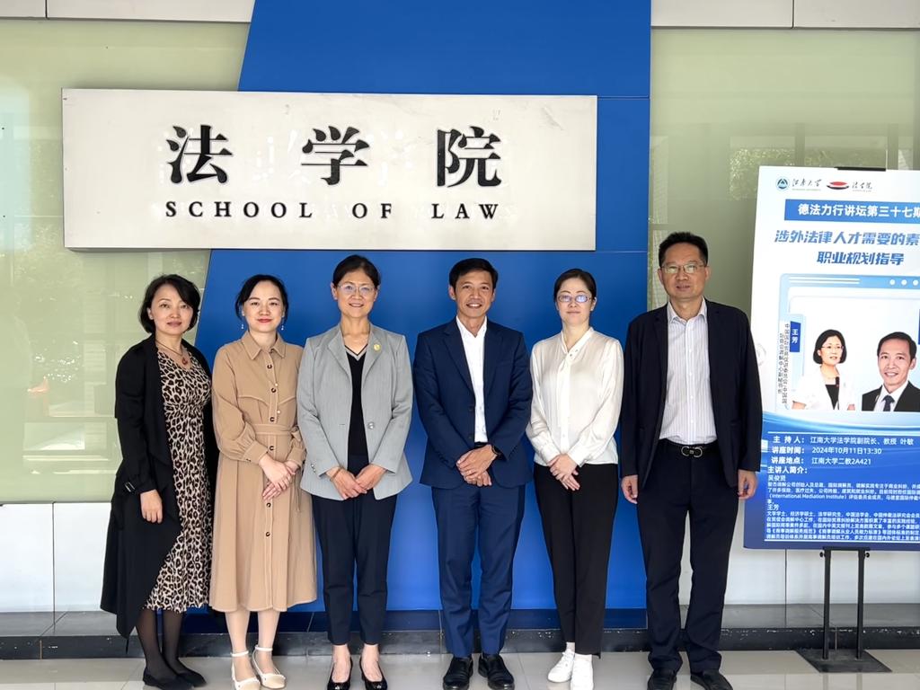 王芳秘书长一行先与永利23411集团副院长叶敏、科研秘书张柯等进行了未来科研合作方面的工作洽谈,随后王芳、吴俊贤两位专家为我院师生开展了《涉外法律人才需要的素养及职业规划指导》为主题的讲座。本次讲座由永利23411集团副院长叶敏教授主持,法律系高岩副教授、朱群芳副教授、吴芳老师以及法学、法律专业的研究生参加。