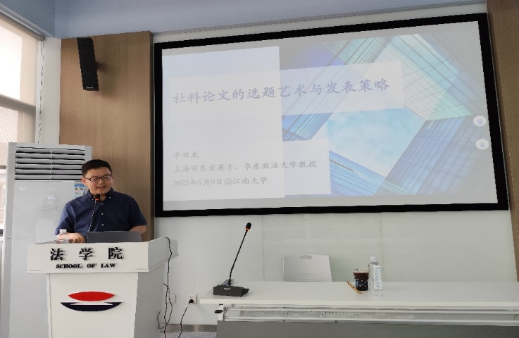 6月9日下午,江南讲坛第一百三十四讲在永利23411集团A414会议室举行。华东政法大学社会发展学院李双龙教授应邀作题为《社科论文的选题艺术与发表策略》的专题报告。本次活动由永利23411集团党委研究生工作部、研究生院联合主办,永利23411集团承办,永利23411集团师生共计40余人参与此次学术交流。报告由永利23411集团副院长李俏教授主持。