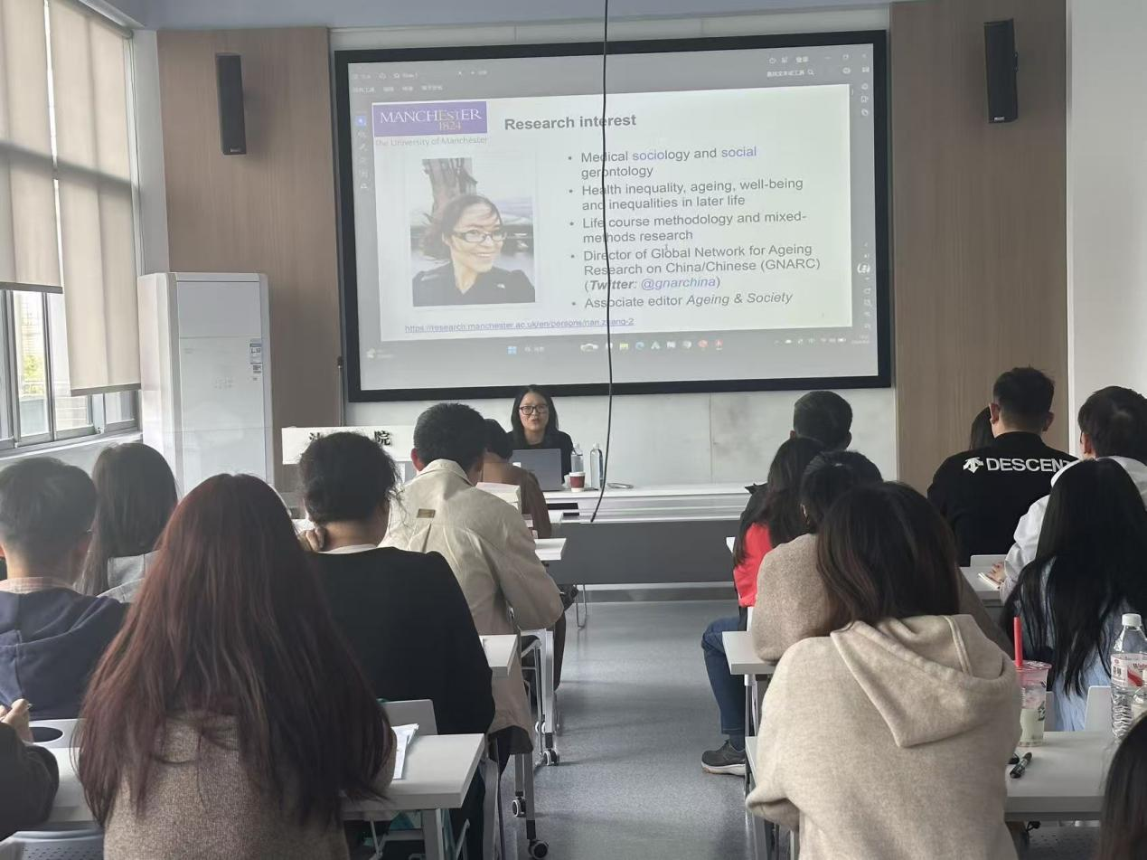 张楠副教授现任曼彻斯特大学中国老龄化全球研究网(GNARC)主任,她还担任国际期刊Ageing & Society 副主编,以及Journal of Ageing & Social Policy和Journal of Global Ageing 编委。张楠副教授长期深耕医学社会学、社会老年学等领域,在健康不平等、全生命周期研究方法等方面成果丰硕。讲座中,她围绕曼彻斯特大学老龄化与健康研究现状、全生命周期理论核心内涵、实证研究案例三大板块展开深度分享。首先,她介绍了曼彻斯特大学在该领域的国际领先地位,还讲解了该校中国老龄化全球研究网、城市老龄化研究组等核心研究机构,以及老龄化与照护迁移、老年友好社区建设等跨学科研究方向,强调定性与定量结合的混合研究方法在老龄化研究中的重要应用价值。