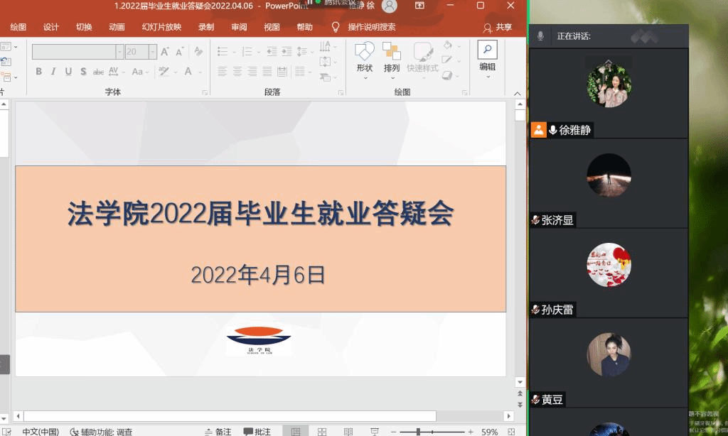 为保证毕业年级相关事项有序推进,帮助应届毕业生了解就业形势、明确就业方向,2022年4月6日,永利23411集团线上召开2022届研究生毕业生就业答疑会,本次大会由分团委书记、研究生辅导员徐雅静主持,2022届研究生毕业生一百余名学生参加了本次线上会议。