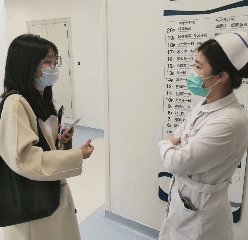 在过程中,学生们自主分工、自行规划路线、主动与医院各类医护工作者、后勤工作者、志愿者乃至患者等进行沟通和交流。运用社会工作专业的沟通等技巧,结合医务社会工作课堂相关理论知识,认真细心地观察和记录医院的结构分布、各科室的内容和职能以及病床数、自动化装置等其他细节。同学们在探索中不断发现问题,在观察、记录和询问中探求合理的解释。