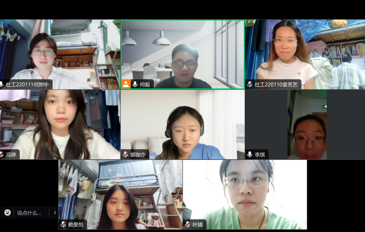 9月10日下午,何毅老师与在九色公益服务机构实习的同学开展线上会议,为在此实习的11名同学进行了督导。11位同学首先向何毅老师汇报了她们在机构的工作内容,包括人居环境整治的评估、社会组织等级评定等社区分析报告的撰写;社区治理平台数据分析与处理;以及机构数据库维护工作。何毅老师对同学们的工作给予了肯定,认为虽然大部分同学以线上工作为主,但能力都受到了很好的训练,九色公益组织开展的社会工作服务类型多种多样,也拓展了传统社会工作的应用场景和领域,对于深化社会工作专业认同以及未来就业方向起了重要作用,鼓励同学下一步主动参与机构展开的实地调研和实习。结合机构工作实际情况,就如何进一步优化工作方法、增强服务效果等方面提出了具体而中肯的建议。同时,何毅老师还对同学们下一阶段的实践寄予期望,鼓励同学们聚焦社区治理与数字化结合的新趋势,探索数字赋能助推社会工作的创新实践,深入挖掘这些领域的潜在价值,为各自的毕业论文选题寻找独特的视角与创新的思路。