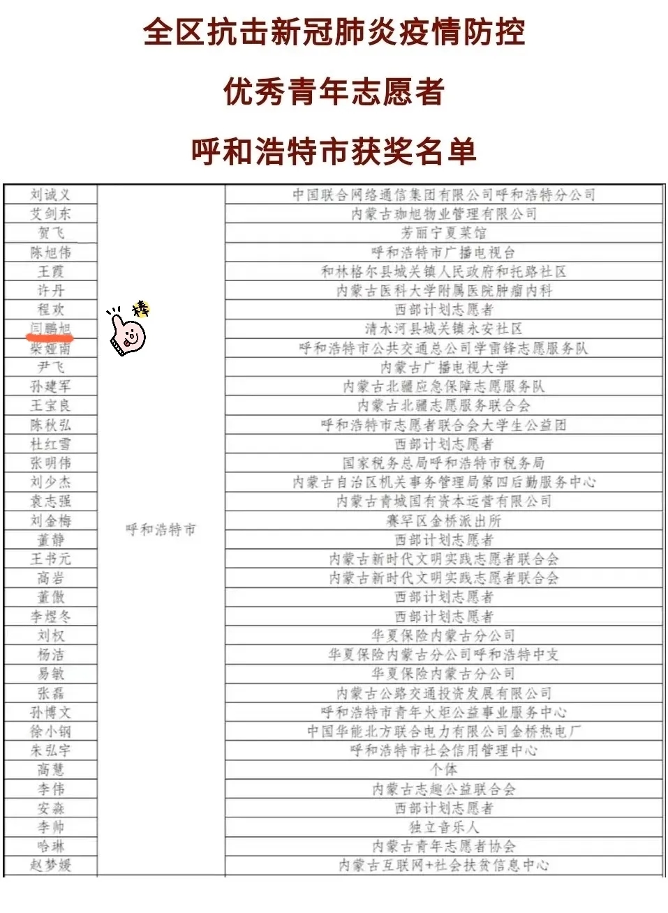 2020年的疫情,让全国上下措手不及,我们在疫情中看到了温暖,看到了光辉,看到了顽强,也看到了拼搏。大年初一,永利23411集团优秀校友闫鹏旭成为抗疫一线成百上千勇士中的一份子,带着作为选调生和党员的义务、带着地方对自己的需要,踏上了内蒙古自治区城关镇永安社区的抗疫征程。