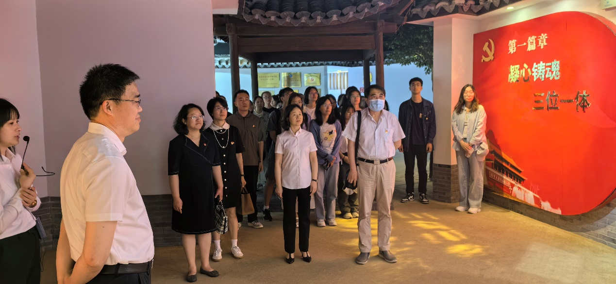 首先,永利23411集团师生一行参观了红豆集团的党建展厅。红豆大学执行校长邓川借助丰富的图片、生动的视频和详尽的文字,深入介绍了红豆集团六十余载的辉煌发展历程及其取得的卓越成绩,同学们对红豆集团党委书记、董事局主席周海江的家国情怀和担当精神表示了崇高的敬意,深入学习了红豆集团党委如何精准把握政治定位,通过党建有效推动企业的建设与发展,将新时代的党建优势成功转化为推动企业高质量发展的强大动力。整个参观过程充分展示了红豆集团以高质量党建引领企业高质量发展的坚定决心与实践成果。随后,在红豆集团党员活动室进行了现场交流。胡博表示红豆集团的“一核心三优势”党建经验、“一融合双培养三引领”党建工作法和“五个双向”的党建工作机制,非常值得学习,希望后续两方能就党建经验、做法、成果进行更加深入的交流分享。